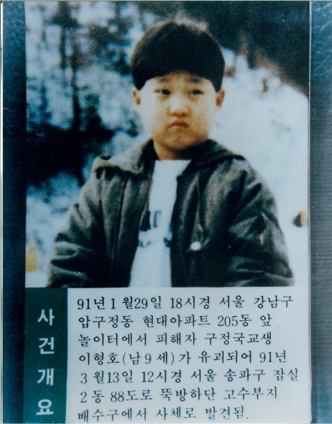 1991年1月底,發生了一件震驚全韓國的孩童誘拐事件,當天晚上一名住在首爾江南區的9歲男童李炯昊,原本在社區遊樂埸與朋友玩耍,卻直到深夜都未返家,爸媽驚覺不對、著急的報警求助,而後接到了一名男子打來的電話,讓他們知道自己的兒子被綁架了,經過60多通的勒索電話,在失蹤的第44天,李炯昊被發現陳屍在下水道、身體嚴重腐敗。